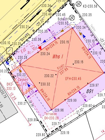 Hierzu zählen u.a. die Abstandflächen, der Geschossigkeitsnachweis sowie die Ausnutzungsberechnung.